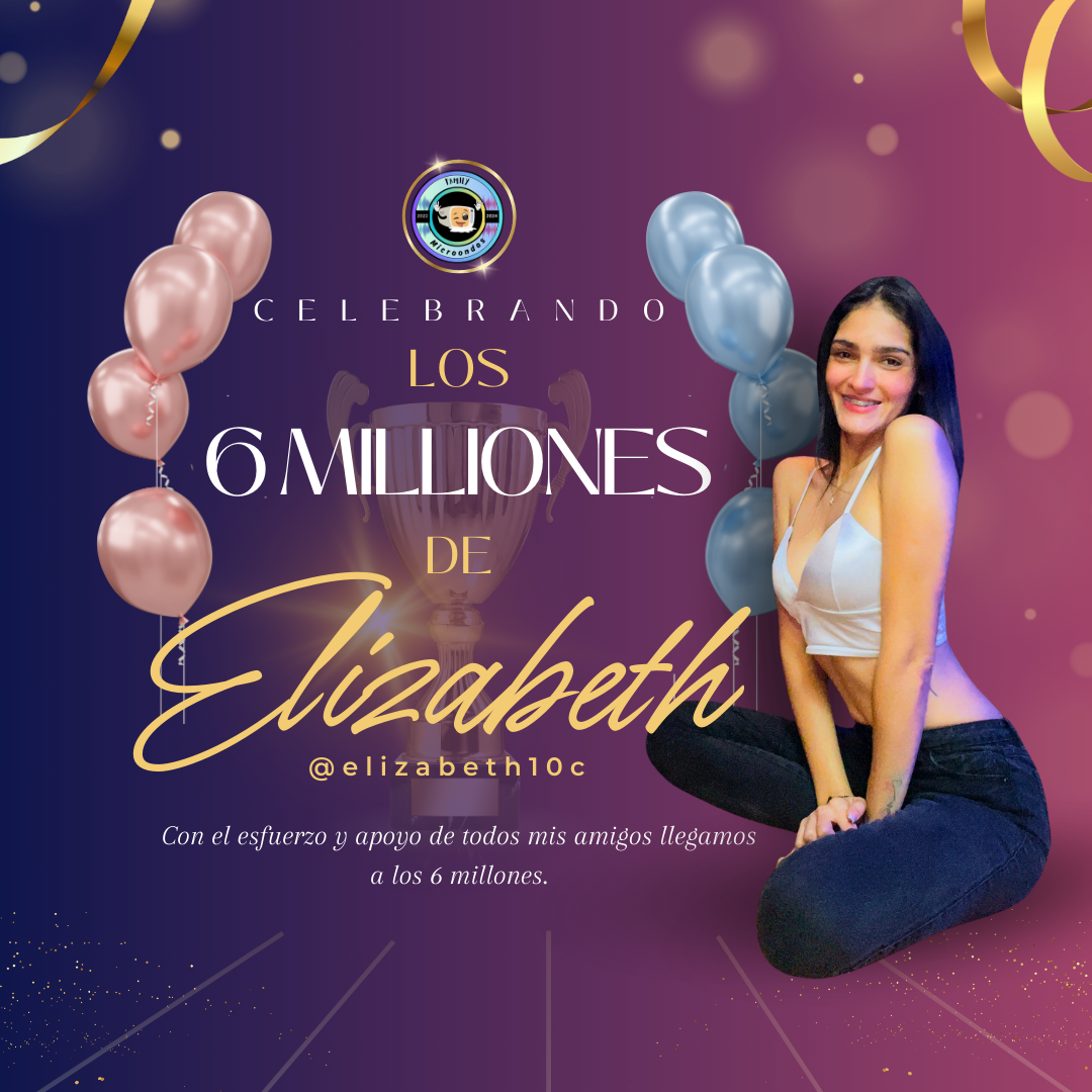 Publicación de redes sociales creada para Elizabeth (amiga cercana y streamer) para celebrar su objetivo alcanzado de 6 millones de créditos en una popular plataforma de transmisión.